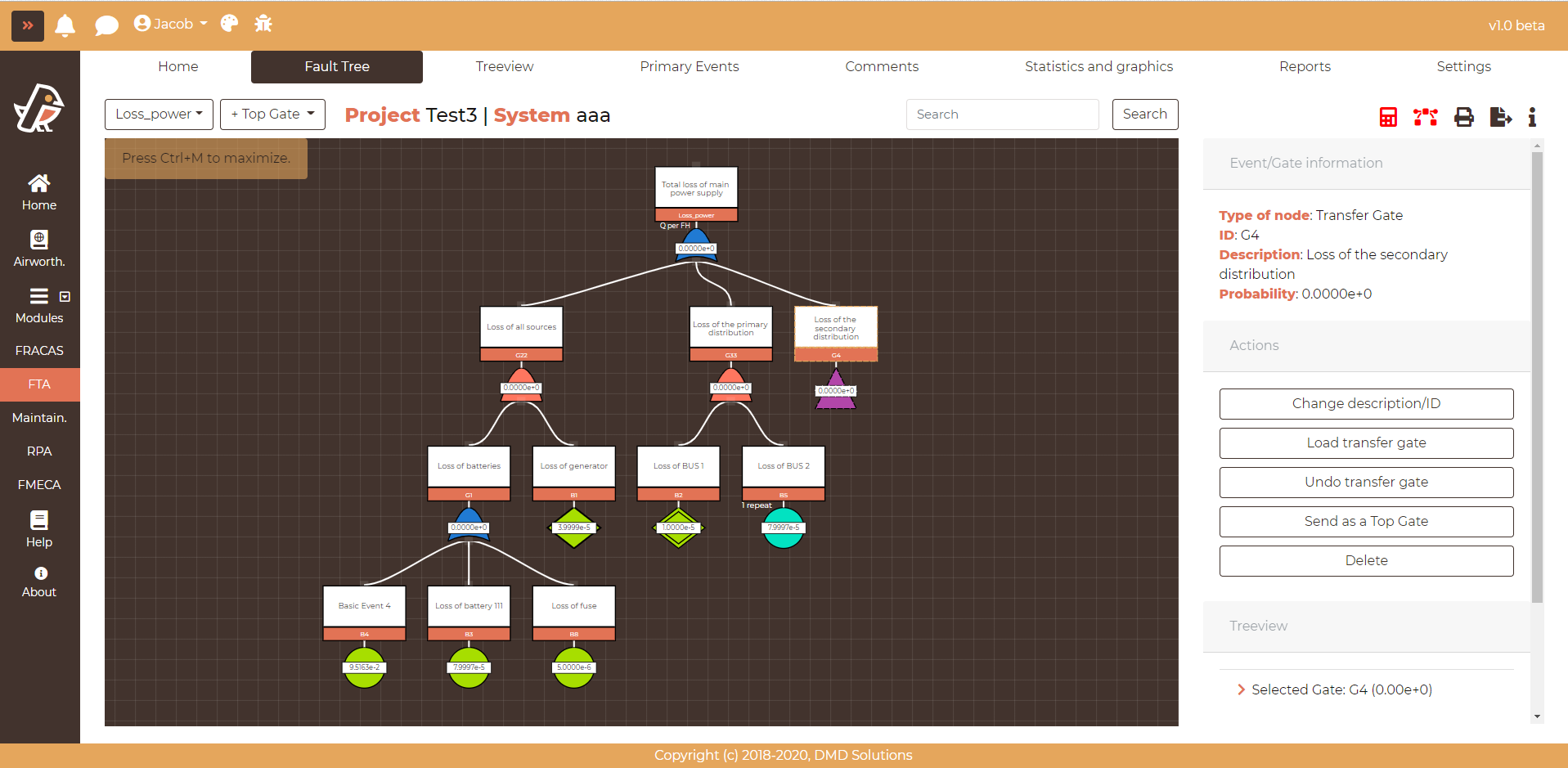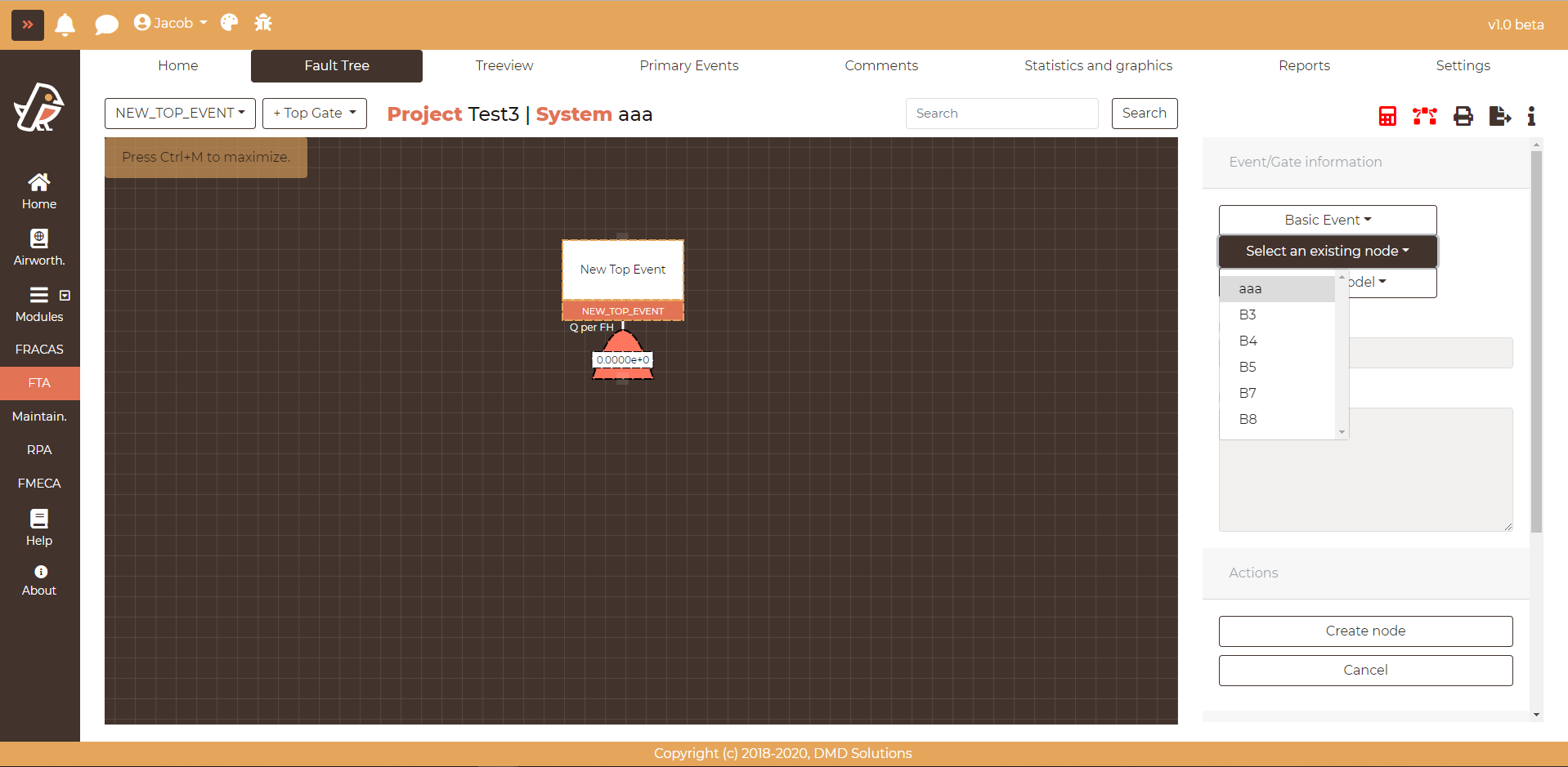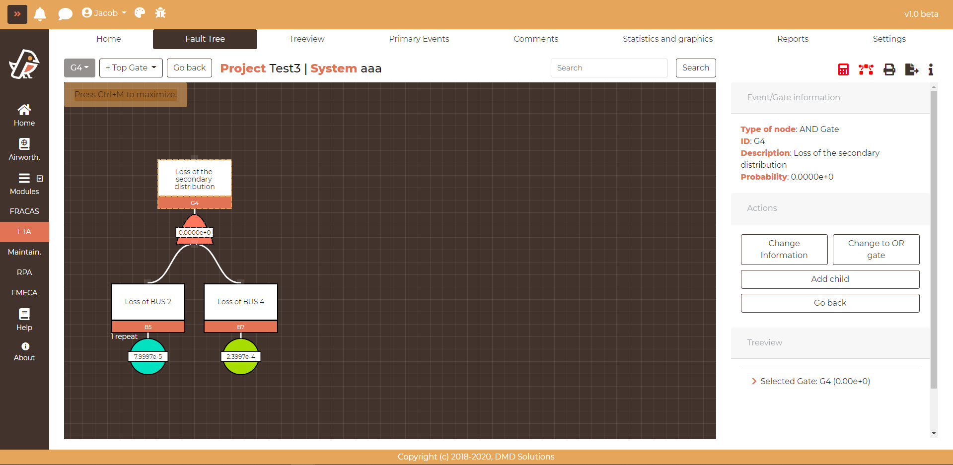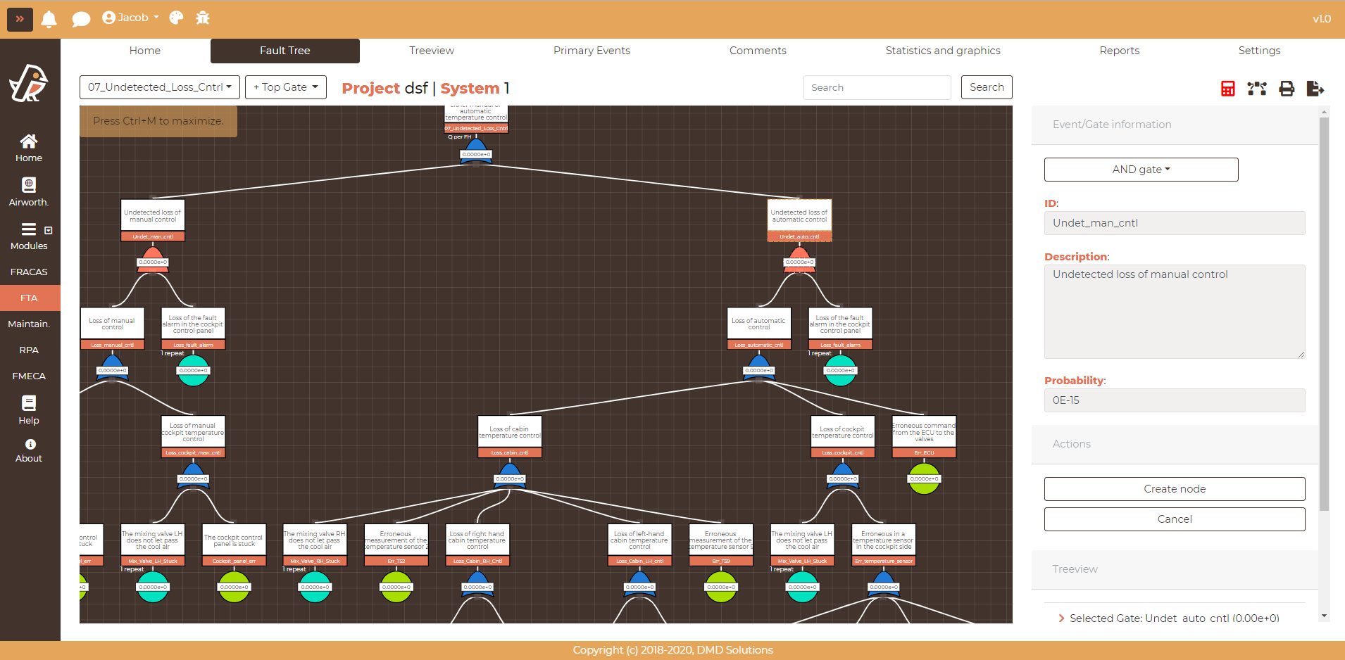 In the top-left dropdown, the user can change between the different Fault Trees of the system.