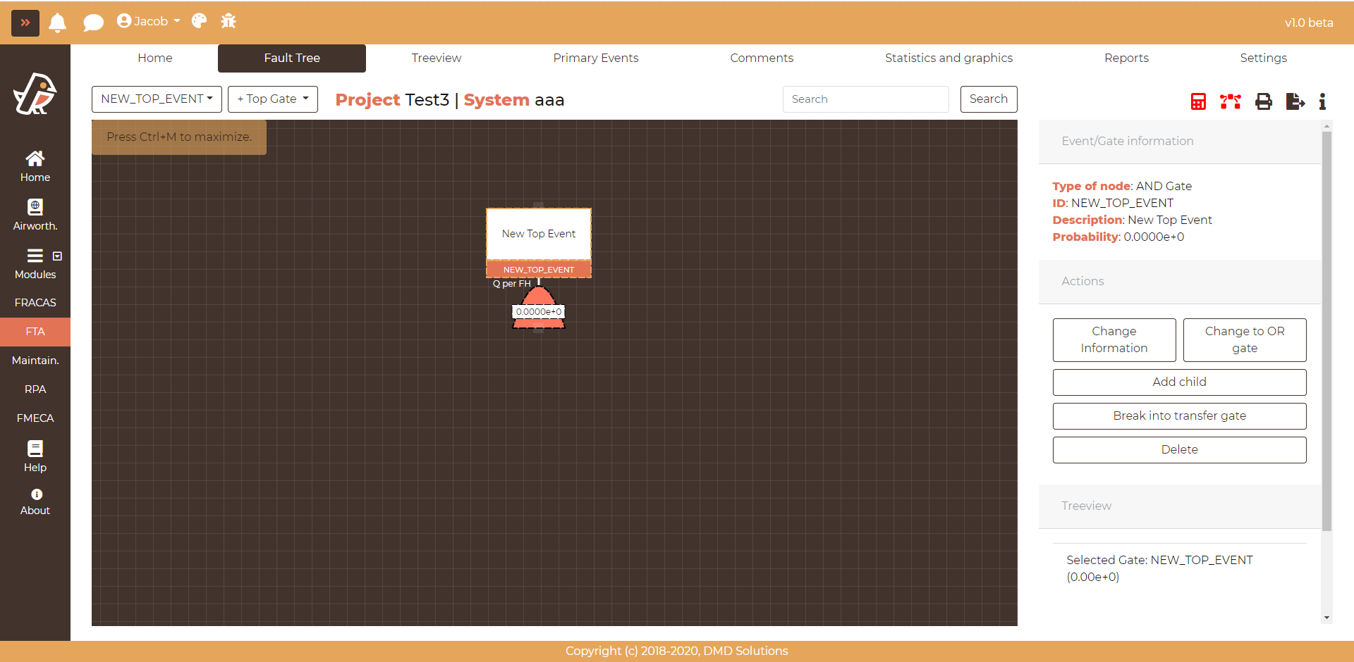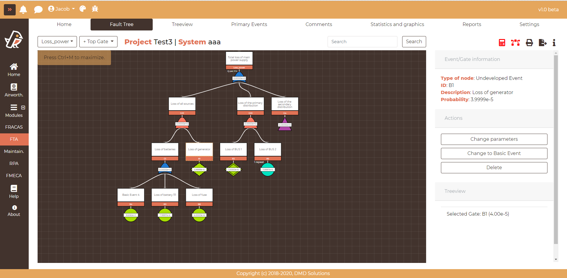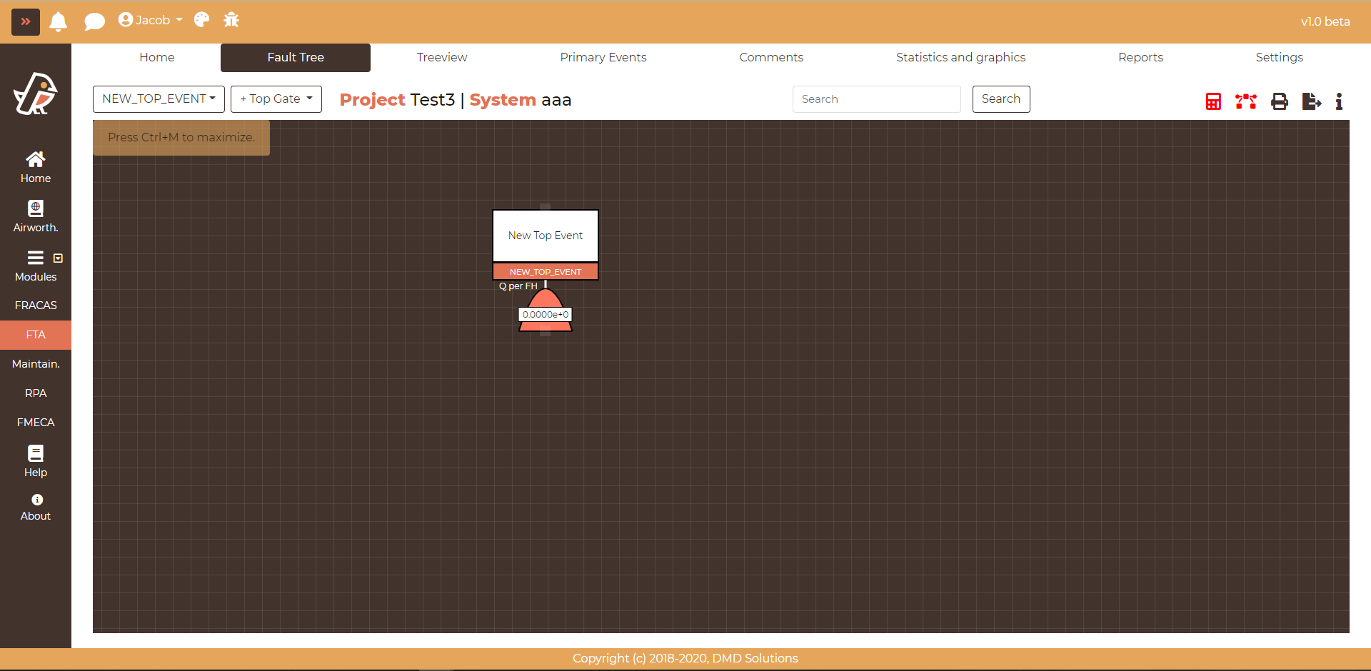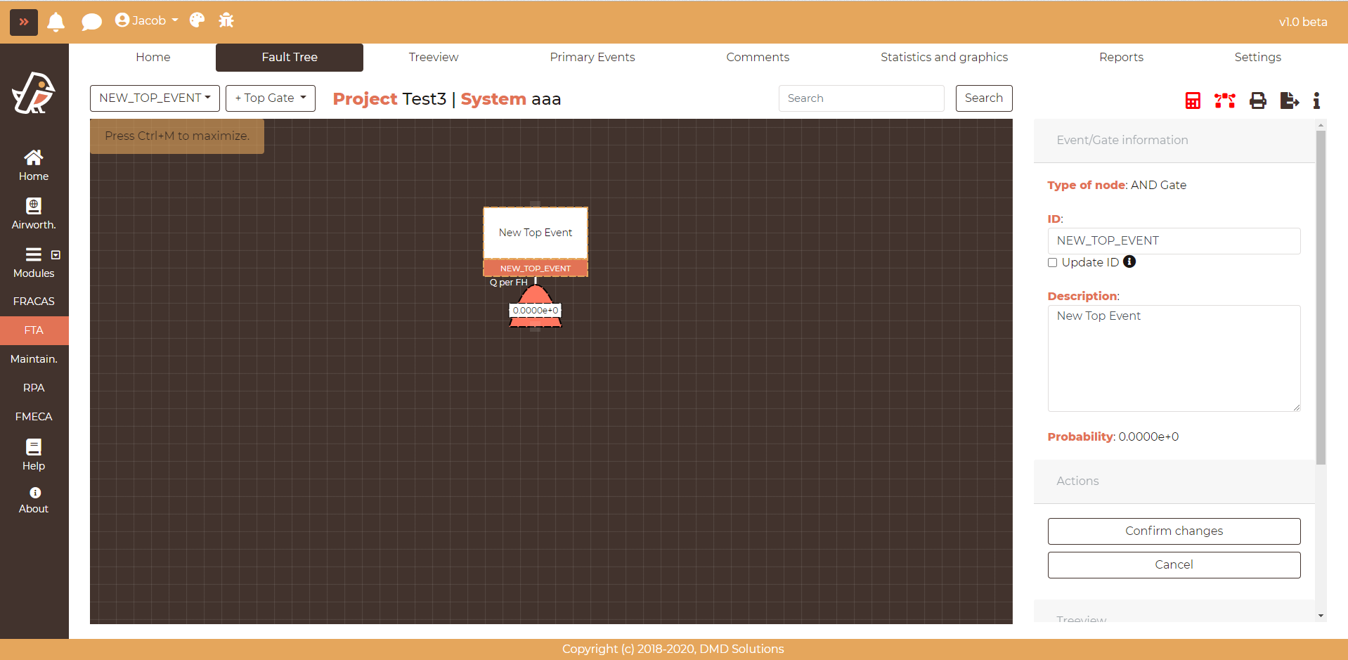 In the top-left dropdown, the user can change between the different Fault Trees of the system.