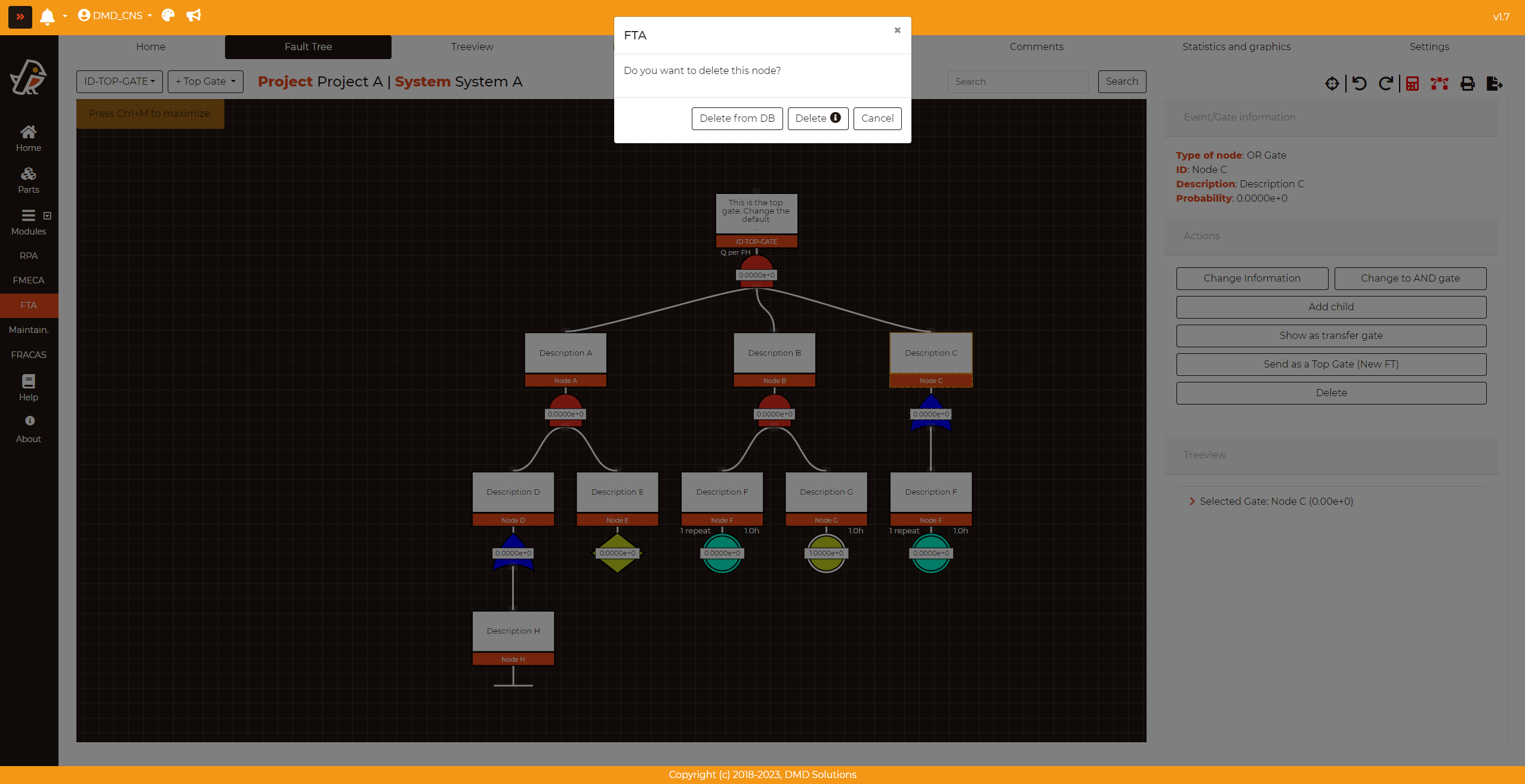 1. Delete from DB: The node is deleted both in the fault tree and in the database.