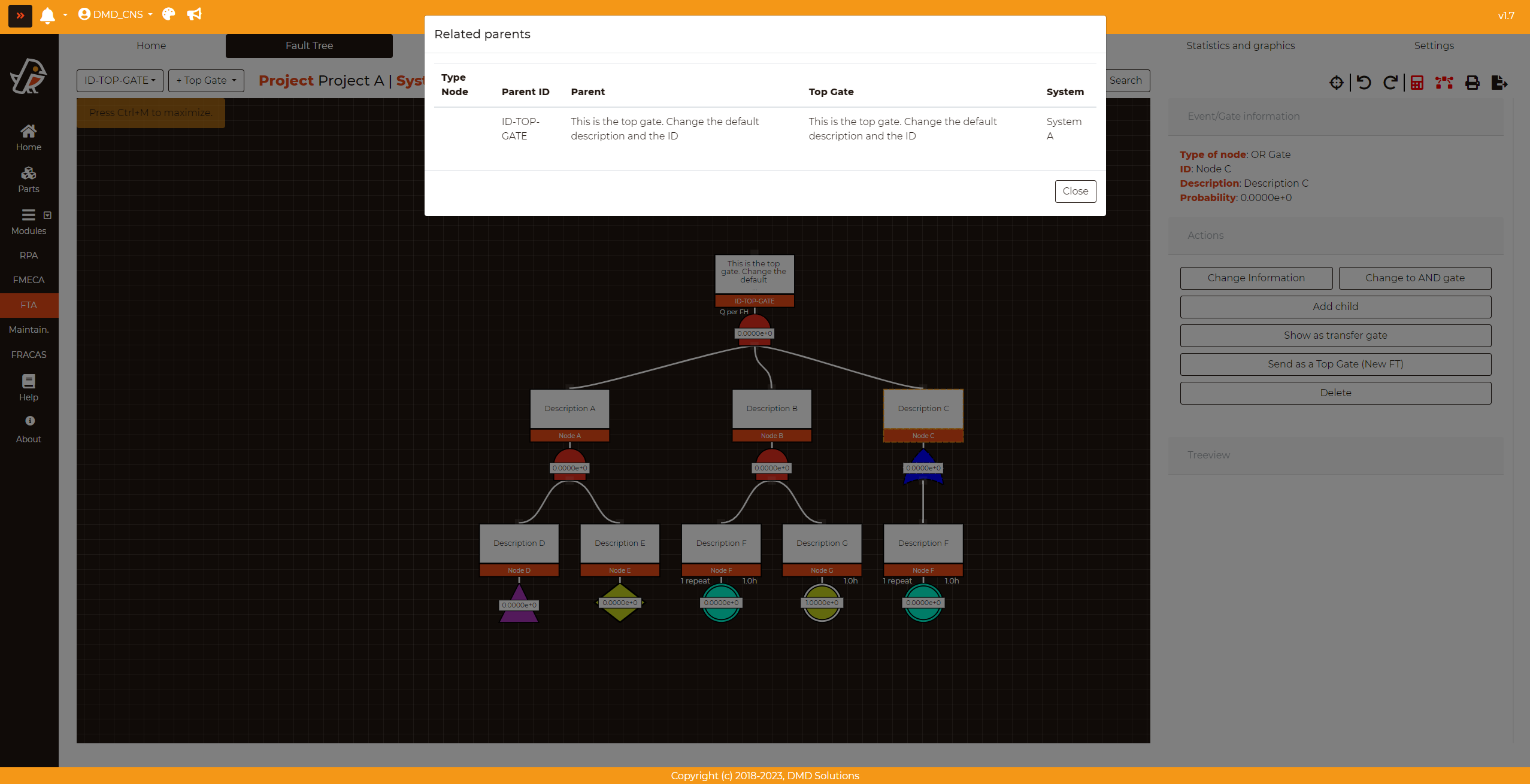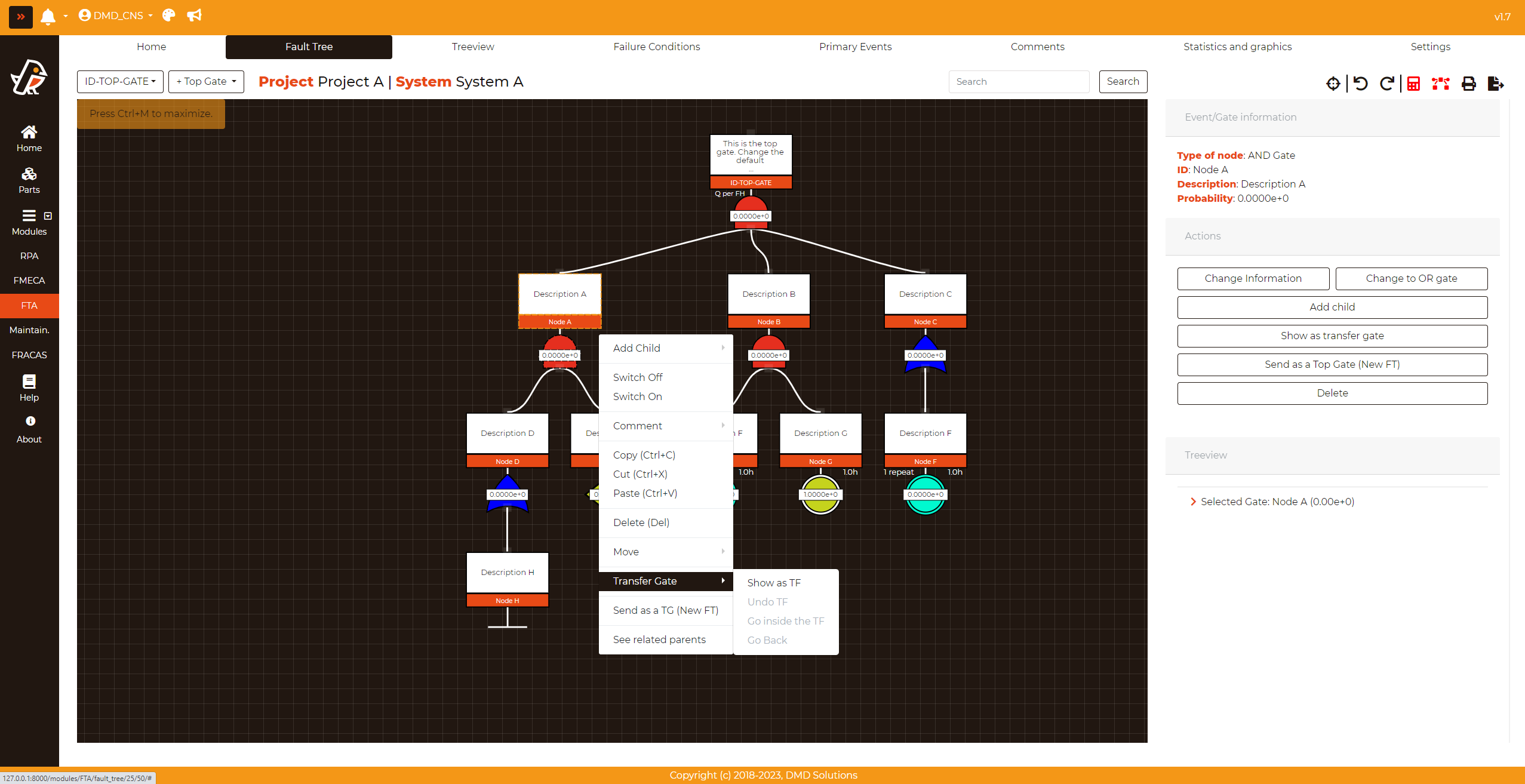 By clicking Send as a Top Gate (New FT), the complete branch will be copy as a new Fault tree being the node the new top gate.