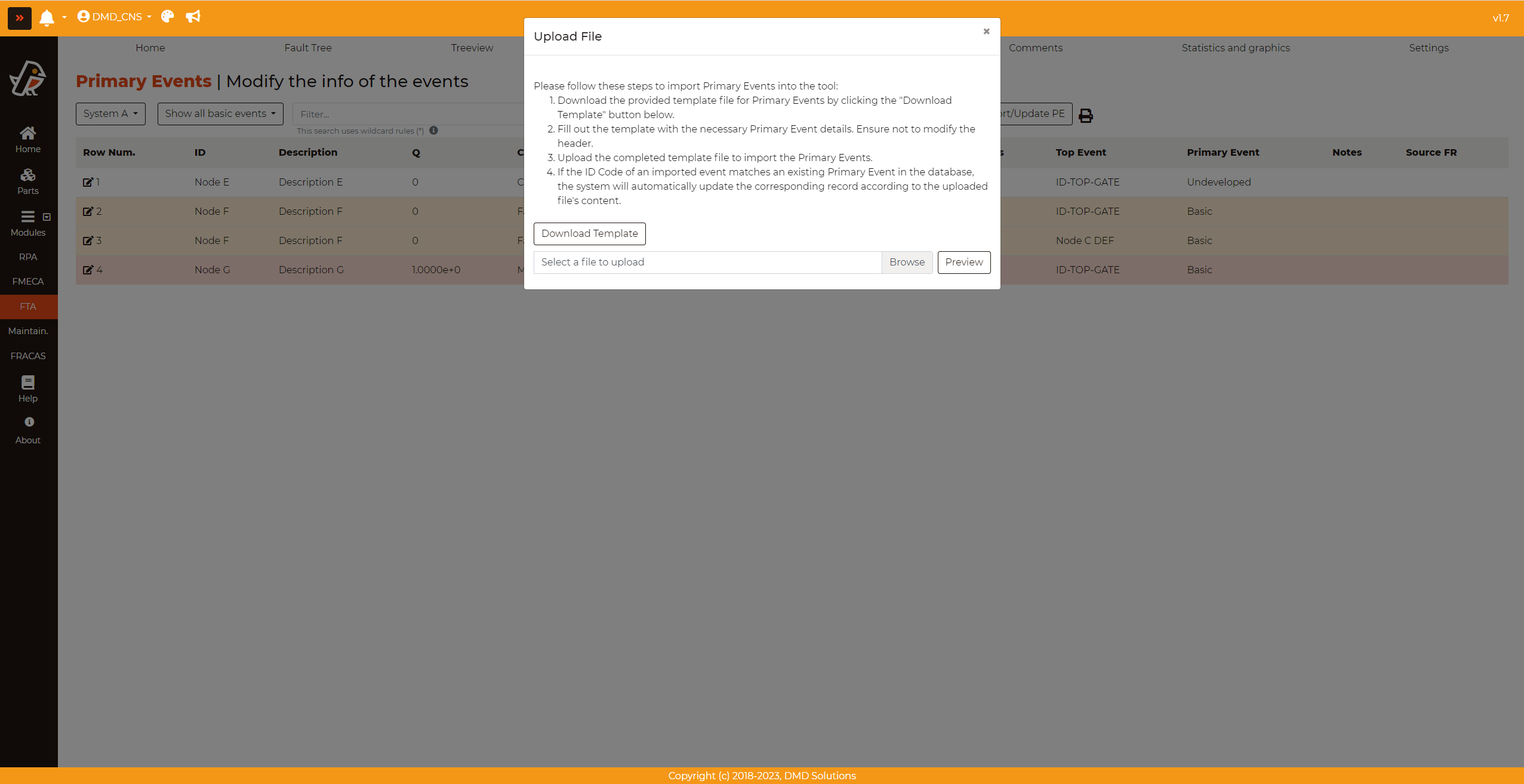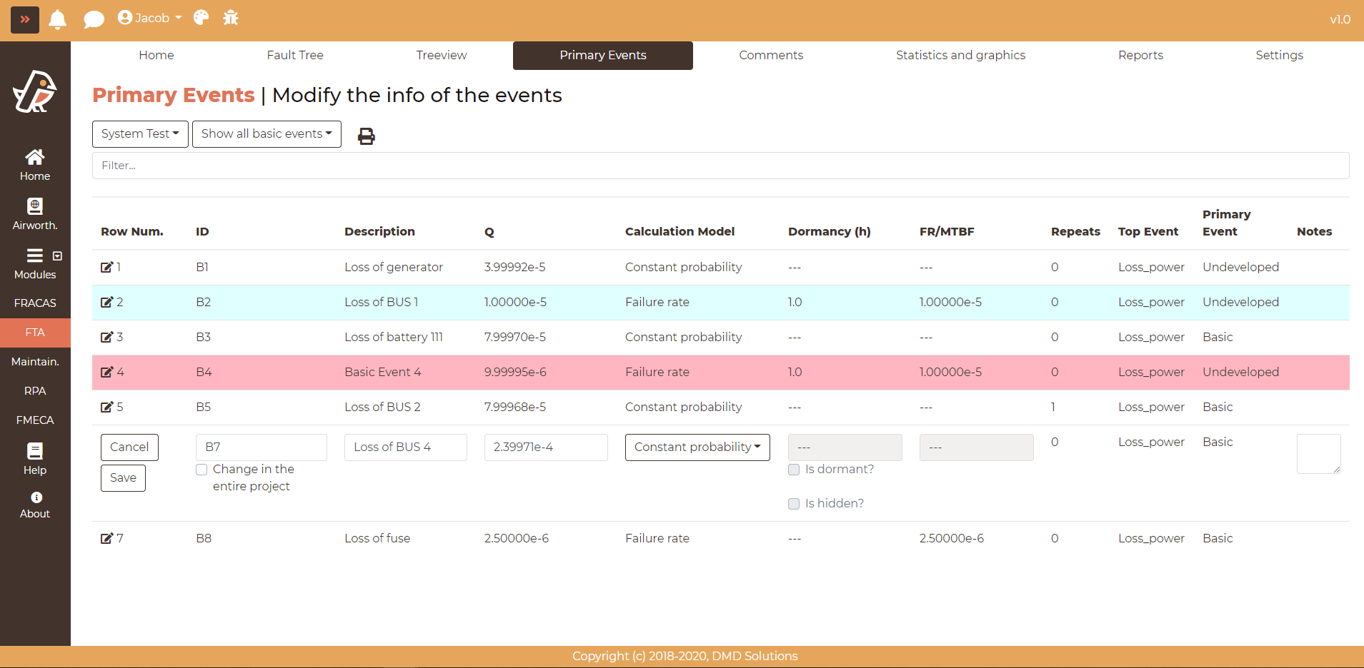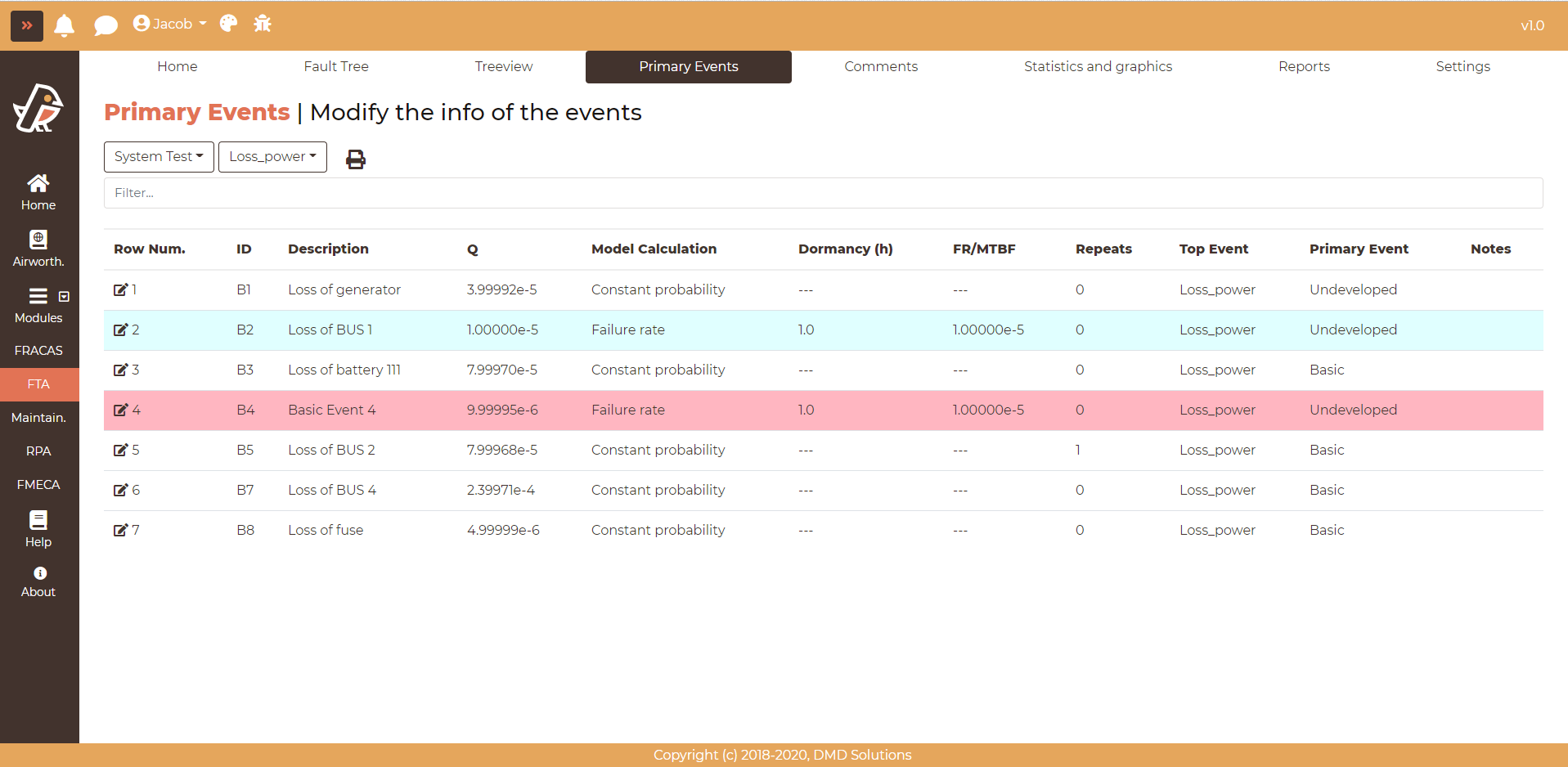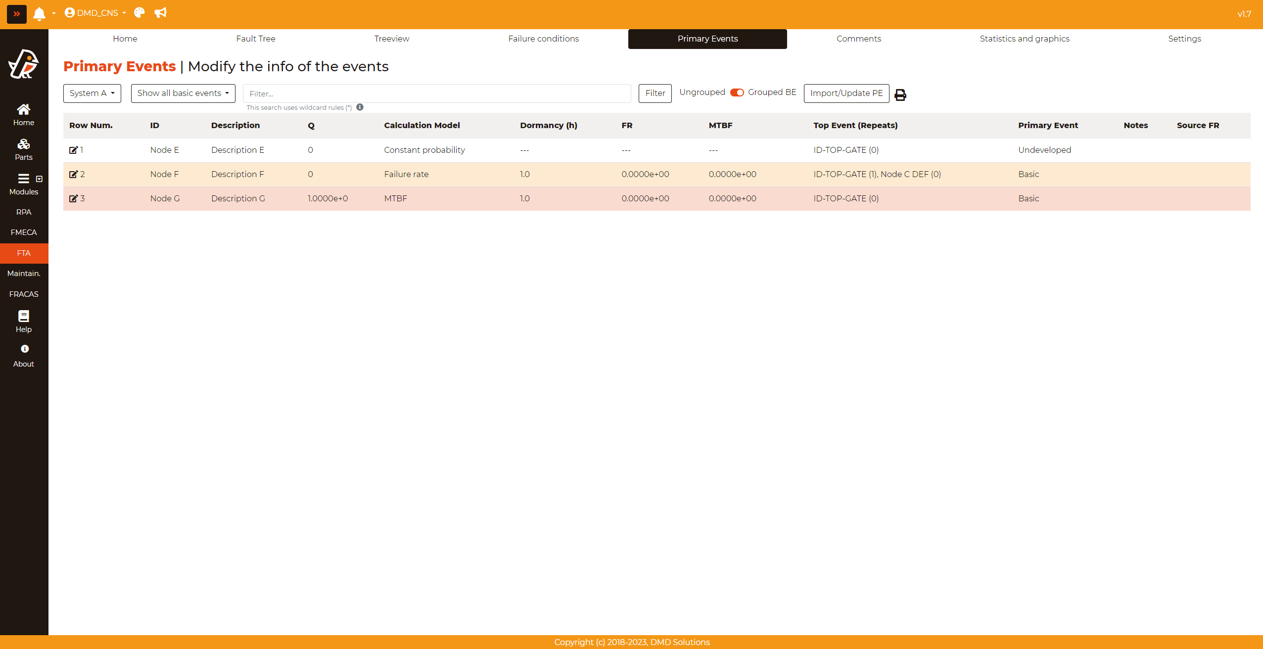 Click on Show all basics events to load all the primary events of the system. Click on one fault tree to load only the primary events of the selected fault tree.