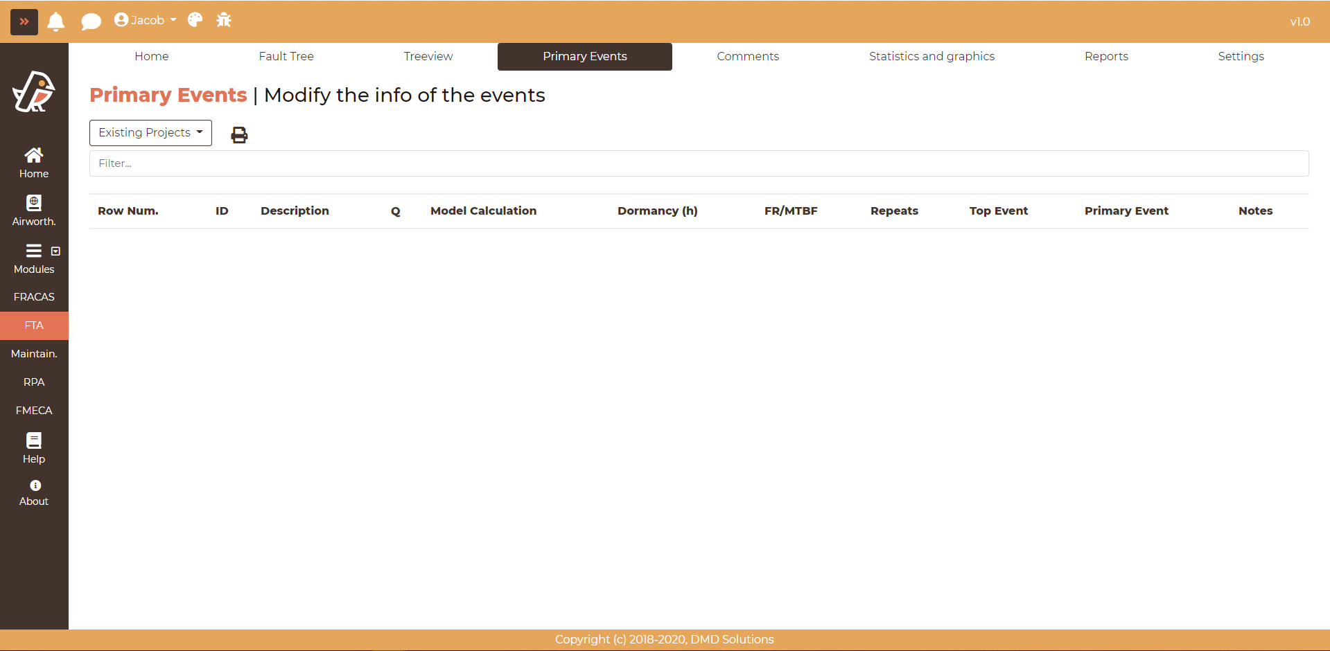 By clicking on the Existing Projects dropdown, all the available systems will be shown. Click on one system to load a dropdown with the system’s fault trees.