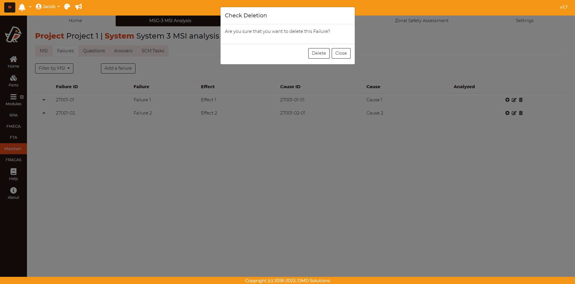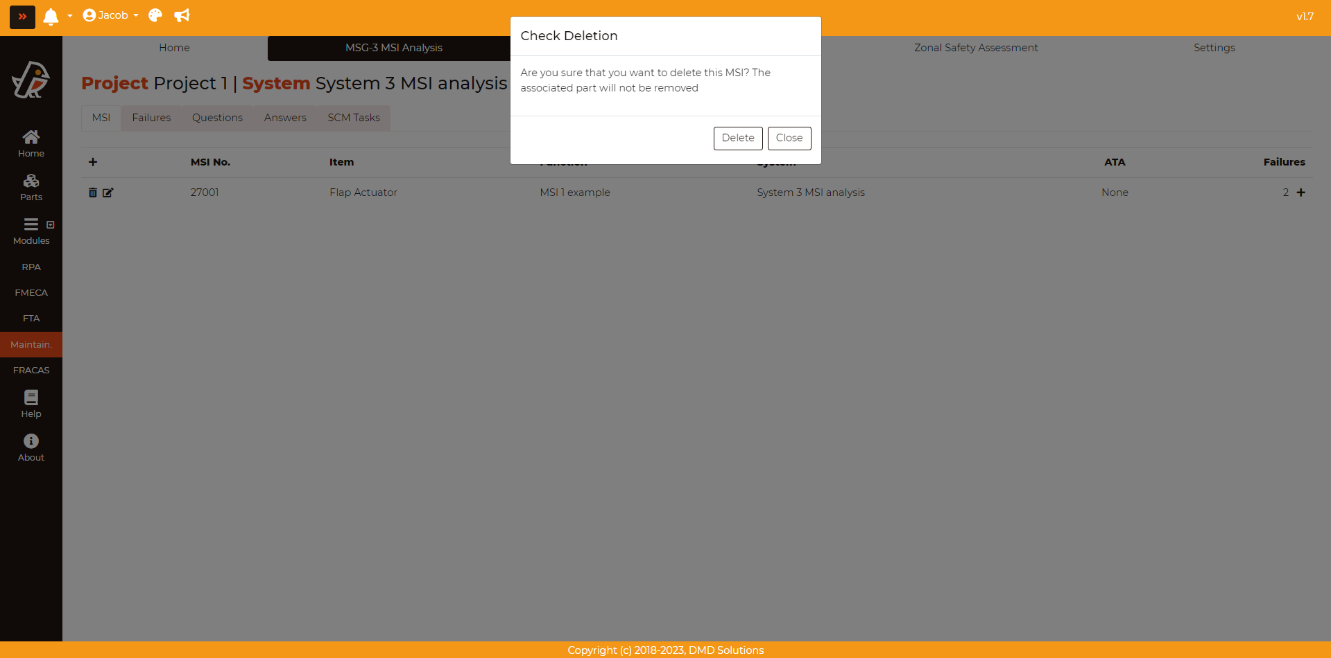 If an MSI is deleted, its corresponding failures, analysis, and SCM tasks will be deleted as well. Robin will ask for a confirmation before deleting the MSI.