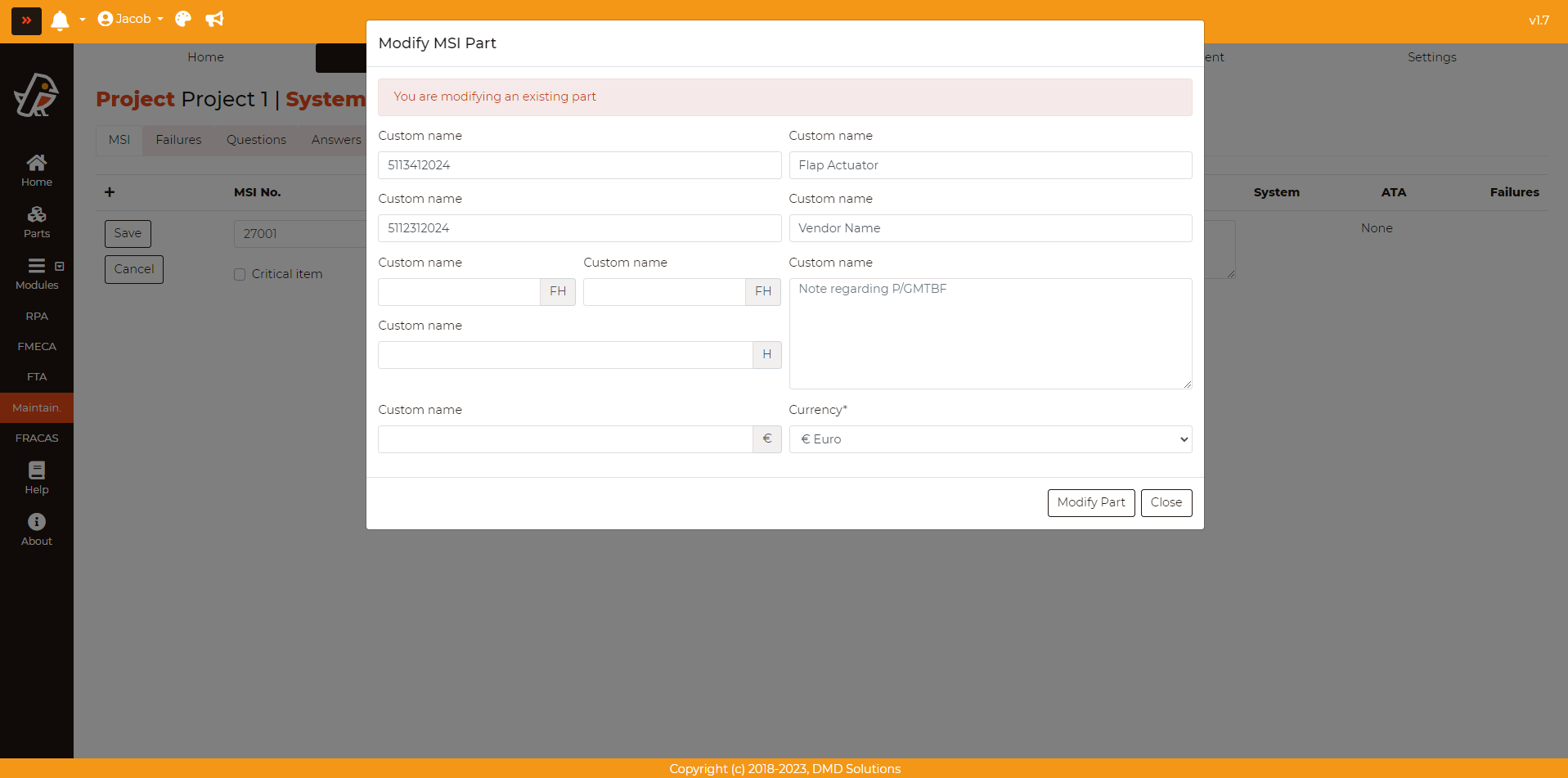 The Part information can also be modified clicking on the Modify part button.
