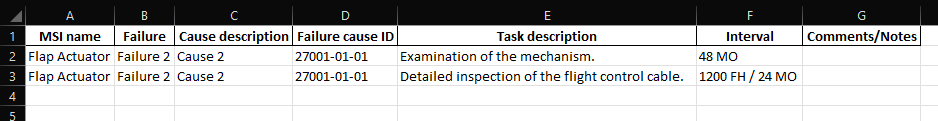 • Interval: Interval after which the task must be performed (The intervals are customised for each user: they can be set in MSG-3 Maintainability settings)