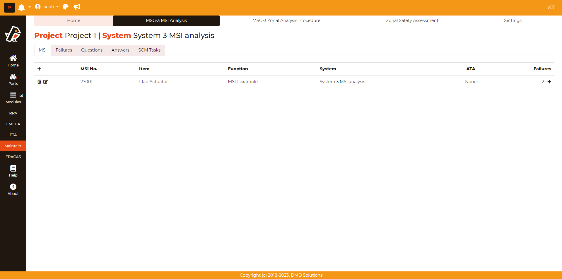 Once the analysis has been performed and all the required tasks has been created, the user can get the list of tasks pressing Maintainability > MSG-3 MSI Analysis > SCM Tasks: