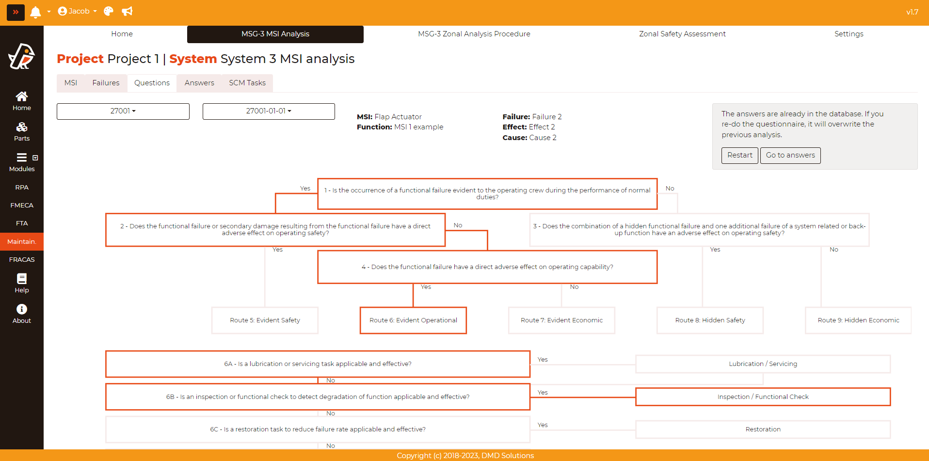 If the user wants to repeat the analysis, click on the Restart button. In case the user want to keep with the analaysis, the user can click on the Go to answers button.